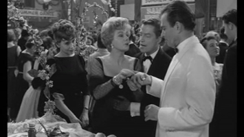 In one of the film's most inventive and original scenes, Kubrick shows that Humbert, balancing a drink on his chest and listening to the faint sounds of Lolita's "yah-yah" garden music playing in his mind, is more at home in the dreamy and masturbatory delights of a hot bathtub than in the clutches of Charlotte's voracious libido. Humbert relaxes in the very bathwater that Charlotte had been drawing for herself just before reading his diary and fleeing to her rain-soaked death. And in a devilish joke at the expense of his protagonist, Kubrick has Humbert's position in the bathtub duplicate Charlotte's in the street, including the supplicatory presence of one Mr. Beale James Dyrenforth), whose son's car ran over Mrs. Humbert, and who moves from sitting on the curb next to her covered body to sitting on the toilet seat next to Humbert's submerged one. (Robert Stam)